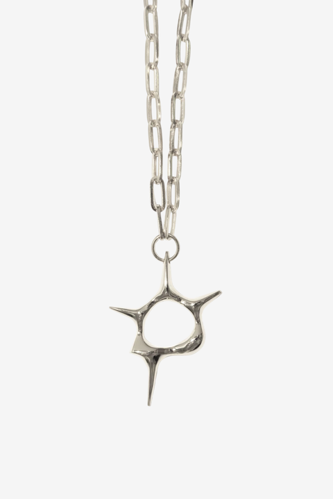 Hecho a mano en bronce con baño en plata y cadena de 45cm regulable.